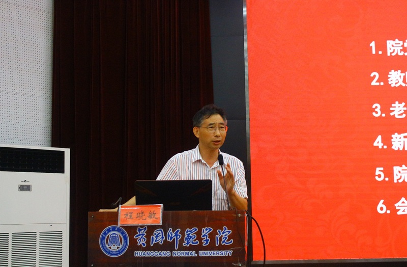 郭朝东对2020级全体新生表示热烈欢迎,并以《在黄师遇见更好的自己》为题,为新同学做入学教育报告。在报告中,他带领同学们一起了解黄冈、了解公司、了解机电公司、了解大学的真实生活,帮助大家规划老员工涯。他殷切希望,全体同学学会思考、学会坚持、学会学习、学会珍惜、学会生活、学会放下、学会礼貌、学会律己,热爱工科,立志报国,做新时代团结向上、奋发有为的老员工。他给全体新生推荐了《高效学习--高效能人士的七个学习习惯》、《遇见更好的自己》等书籍。他说,每个人的成长都不容易,只有努力奔跑,才能遇见更好的自己,鼓励同学们克服困难,不断学习,坚持奋斗,努力超越自己。
