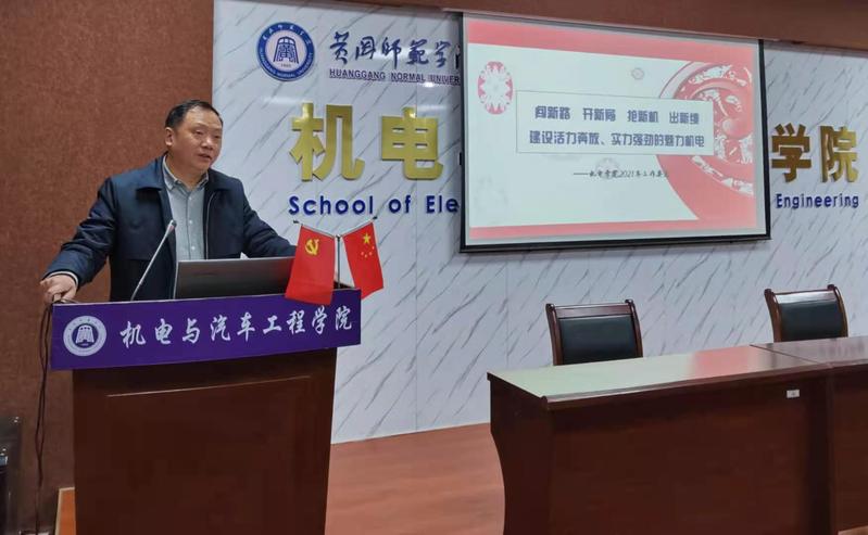 郭朝东以《闯新路、开新局、抢新机、出新绩,建设活力奔放、实力强劲的机电公司》为题,作会议总结讲话。他扼要回顾2020年工作成绩,对2021年度重点工作进行了布置,并提出工作要求。他充分肯定了公司2020年在党建、人才培养、重点项目建设、科研成果、人才引进、募资捐赠、员工工作等方面上取得的成绩。他强调,新年度,新征程,公司要凝练学科方向,冲刺申硕目标;突出问题导向,提升人才培养质量;强化校企合作,促进科研成果转化;加强员工工作,提高考研率、报考率、一志愿率和报到率;全面加强党建,彰显党建引领保障功能。为此,班子成员要带头抓学习、讲政治、谋大事、顾大局,提供组织保障;实施“暖心工程”,为师生办实事、解难题,强化思想保障;不断完善制度,用制度管人、用制度管事,增强制度保障;强化组织观念和纪律约束,建设“清廉黄师”、“清廉机电”。结合省委党委学习经历,他希望全体教师改进教学方法,加强课堂管理,提升教学质量;改进教学模式,增强教学效果;加强师风师德,增长业务本领;升华师生关系,促进教学相长。