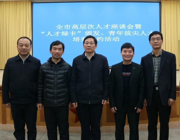 12月13日,黄冈市高层次人才座谈会暨“人才绿卡”发放、青年拔尖人才培养签约活动在市委小礼堂举行。市委常委、组织部长何飞,副市长潘国林,市委组织部副部长朱凤娥,团市委书记张章出席会议。公司党委副书记陈朝阳,青年拔尖人才机电与汽车工程公司刘志博士、生物与农业资源公司李世升博士参加会议。