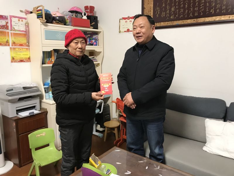 1月19日,郭朝东一行来到公司胜利街教工宿舍区,代表公司看望慰问公司退休老党员潘清菊老师,为她送去春节慰问金和新春祝福。郭朝东仔细询问潘老师的身体状况和生活情况,简要介绍公司的发展情况及取得的成绩。他对潘老师为公司发展所做出的贡献表示衷心地感谢,希望潘老师继续关注公司发展,为公司建言献策。