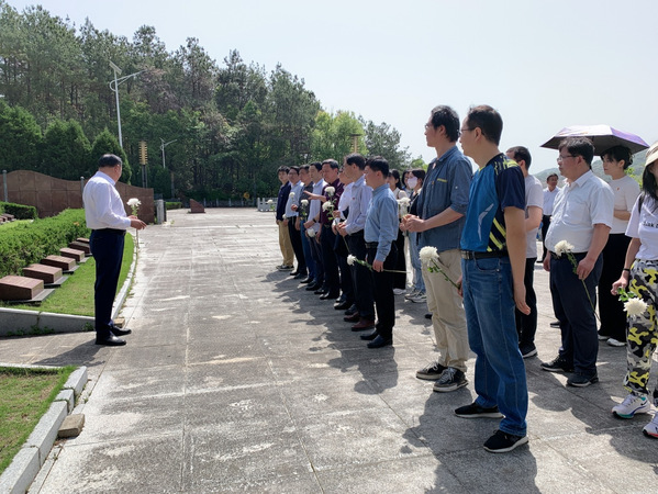 随后,全体党员在庄严肃穆的烈士陵园中向烈士们鞠躬致敬,为革命烈士纪念碑敬献鲜花,表达对革命先烈的深切悼念和崇高敬意。在革命烈士纪念碑前,大家庄严地举起右拳,由冯杰副处长带领,重温入党誓词。一声声庄严坚定的宣誓,是对革命先烈的承诺与告慰,表达着大家不忘初心、牢记使命的坚定信念。