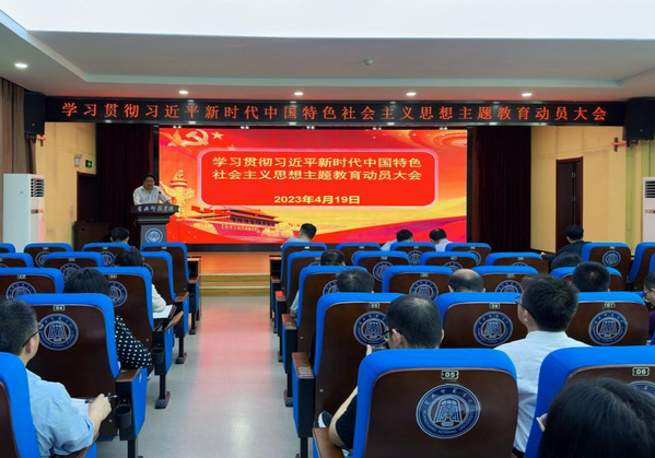 郭朝东作动员讲话。他要求,在全党深入开展学习贯彻习近平新时代中国特色社会主义思想主题教育,是党的二十大作出的重要部署。全公司党员、干部要提高思想认识,深刻领会开展主题教育的重大意义;紧盯目标任务,认真落实主题教育各项部署;强化责任担当,以实际工作成果检验主题教育实效;落实政治责任,把从严从实要求贯穿主题教育全过程。他希望,通过主题教育,不断深化对“两个确立”决定性意义的认识,增强“四个意识”、坚定“四个自信”、做到“两个维护”。通过主题教育,落实立德树人、“三全五育”根本任务,全面推进年度各项工作,聚焦机电公司发展短板,破解公司发展难题,着力纾解师生急难愁盼问题,促进机电公司超常规、高质量发展,为公司申硕更名、建设省属一流大学做出更大贡献。