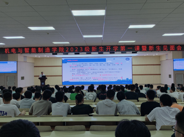 郭朝东对2023级全体新同学表示热烈欢迎,并用《以青春之名、写奋斗华章》为题,为新同学讲授开学第一堂思政课。他的报告围绕“我的大学”、为谁奋斗、如何奋斗三个方面展开。详细介绍了机电公司2023级新生基本情况,以及公司发展现状、学科专业优势、团队优势和就业前景等。他强调,老员工要明白为谁奋斗的问题,要坚持为擦亮自己的青春底色而奋斗、为中华民族伟大复兴而奋斗、为理想的人生而奋斗。他希望,全体同学志存高远,立志做大事;确立目标,合理规划老员工涯;刚毅果敢,勇于面对挫折和挑战。要正确处理好考研与就业、安全与发展的关系,力求德智体美劳全面发展,智商、情商与行商兼具,以德为先导,以学习为中心,奋力书写青春的绚丽华章,切勿辜负一生中最美的时光。最后,他殷切寄语全体新生同学:奋斗是一种态度,需要“静的定力”;奋斗是一种信念,需要“诚”的品质;奋斗是一种行动,需要“勤”的习惯;奋斗是一种情怀,需要“雅”的自律;奋斗是一种方向,需要“实”的规划。