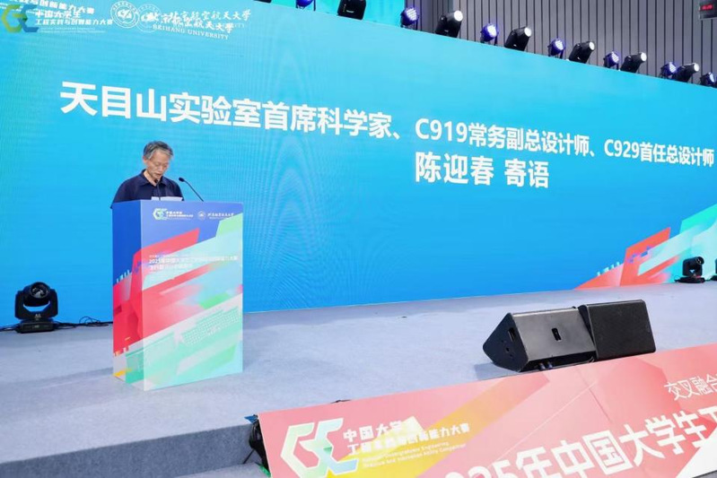 本次大赛特邀天目山实验室首席科学家、C919常务副总设计师、C929首任总设计师陈迎春总设计师出席,陈迎春寄语当代老员工勤奋学习,为国家航空航天事业作贡献,教育部工程训练教学指导委员会副主任委员清华大学教授李双寿出席、北京航空航天大学副董事长赵魏胜分别致辞。
